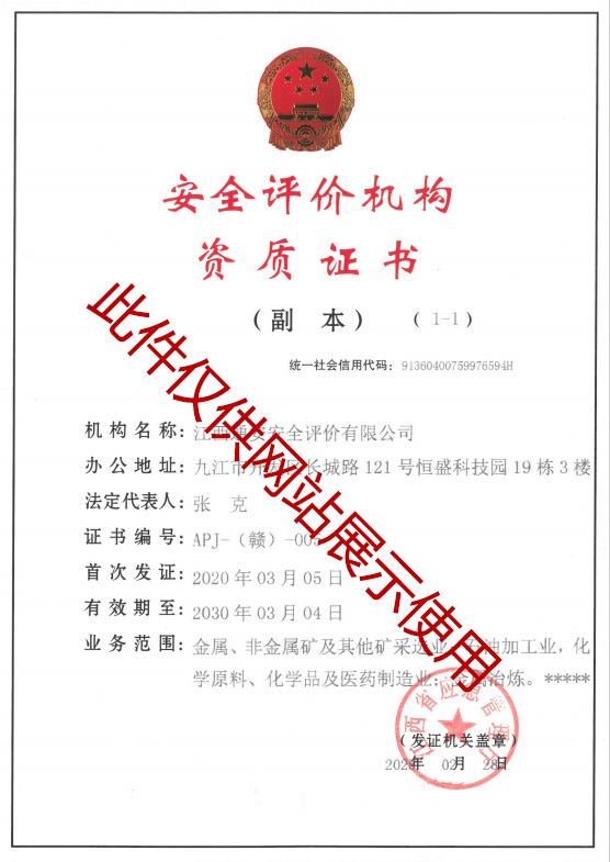 • 安全評(píng)價(jià)機(jī)構(gòu)資質(zhì)證書